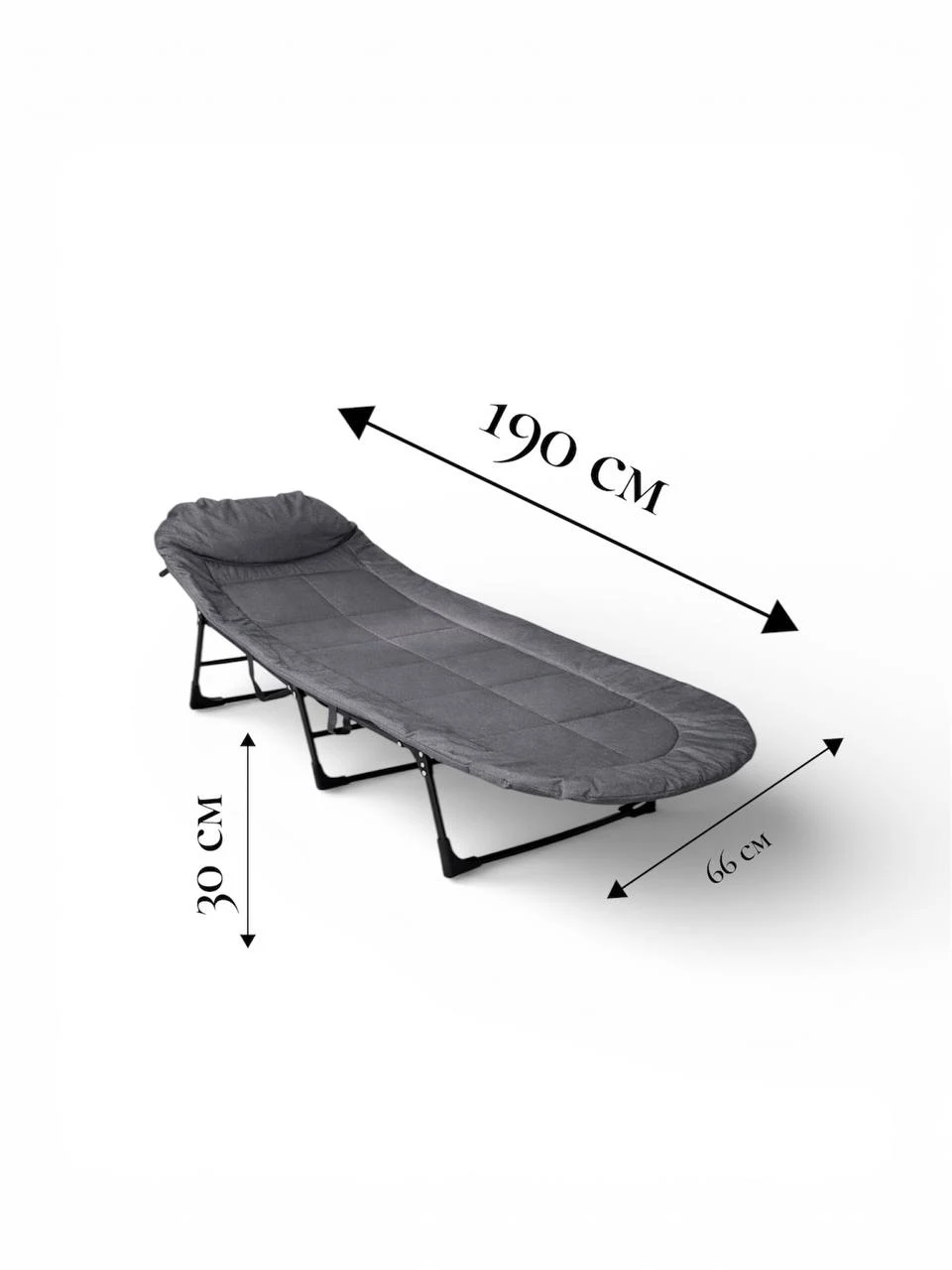 Розмір: 190*66*30см. Розраховано на вагу ДО 150 кг. для короткочасного або тимчасового відпочинку та сну в побутових умовах, Може використовуватися як вдома, так і в місцях тимчасового проживання.