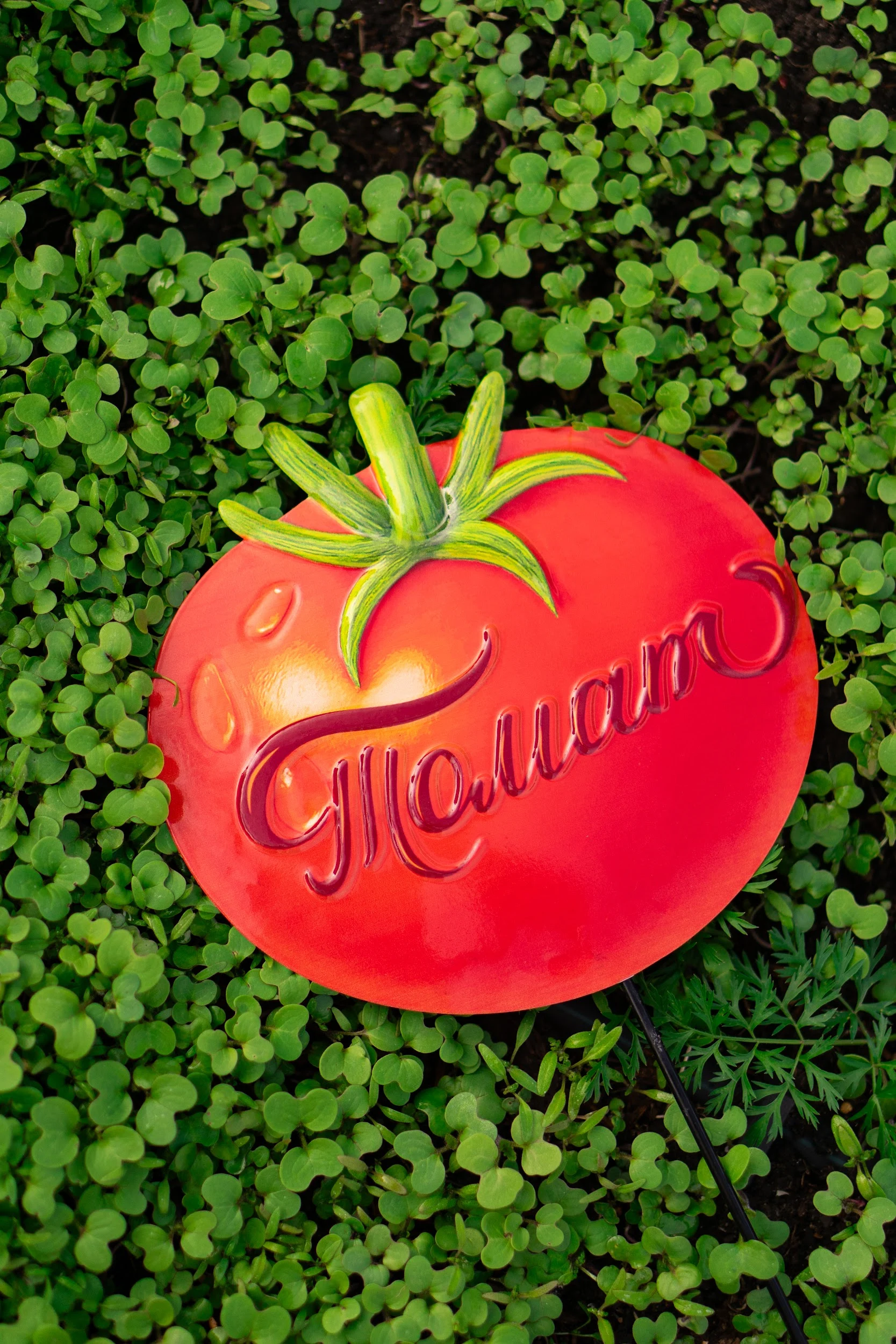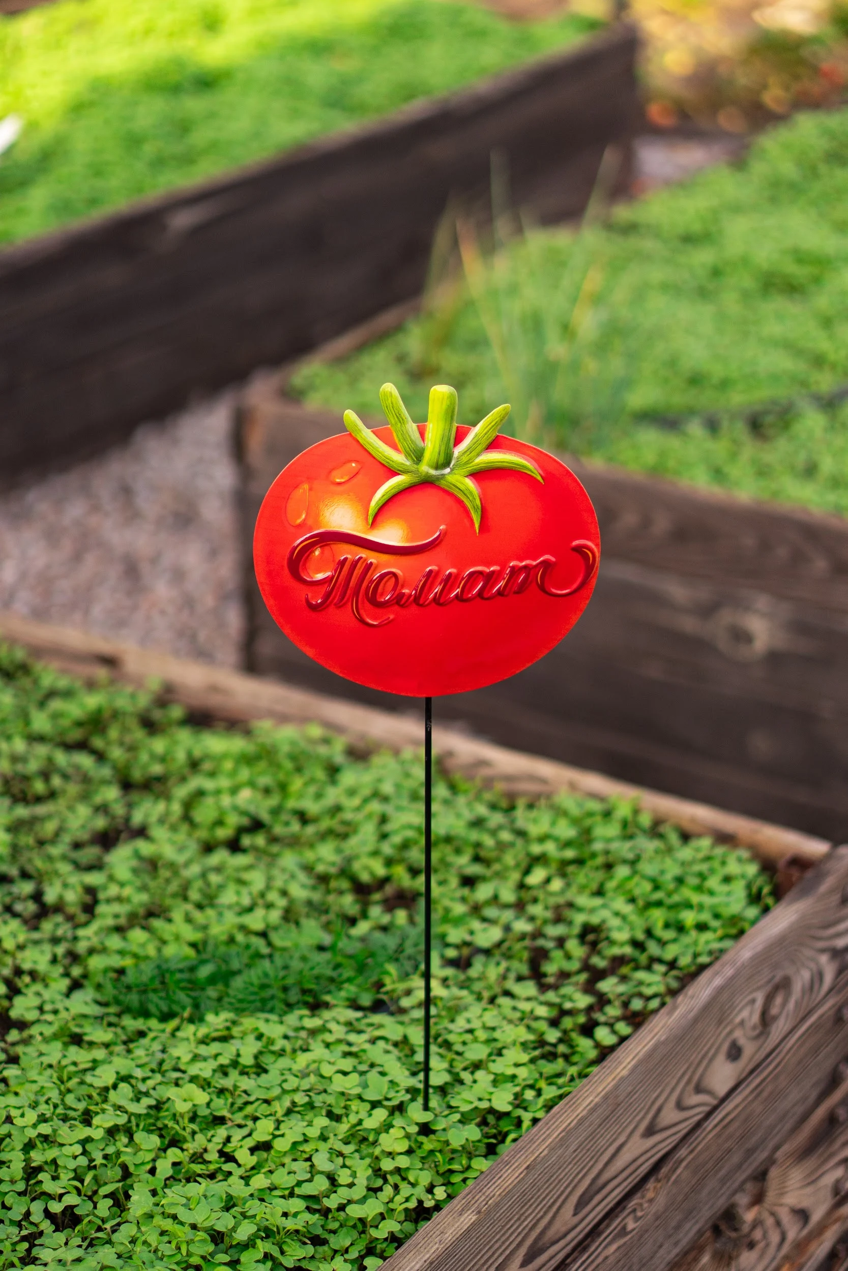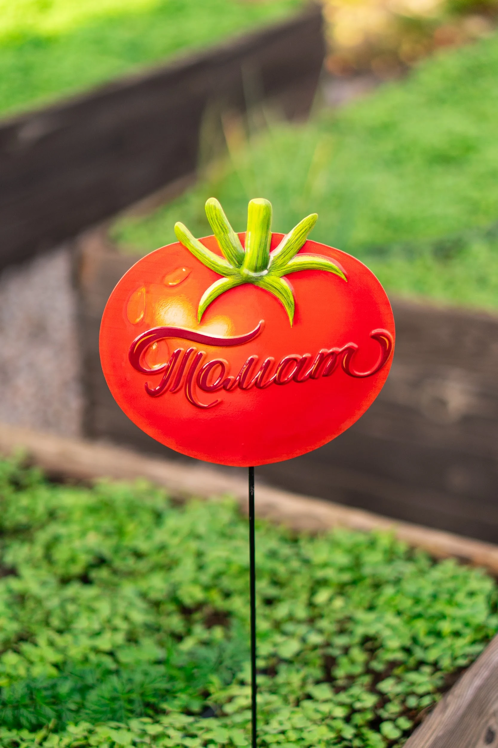 Садова табличка «Томат» — призначена для декоративного позначення рослин та грядок у саду, городі або на присадибній ділянці. Допомагає впорядкувати посадки, створює зручність у догляді та додає естетичності садовій ділянці.